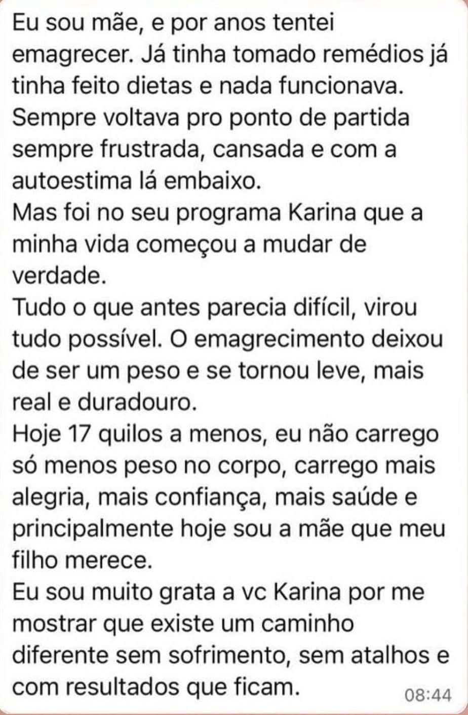 Sou a Karina Golin, e antes de ajudar mulheres a emagrecer, eu precisei viver a minha própria transformação.
